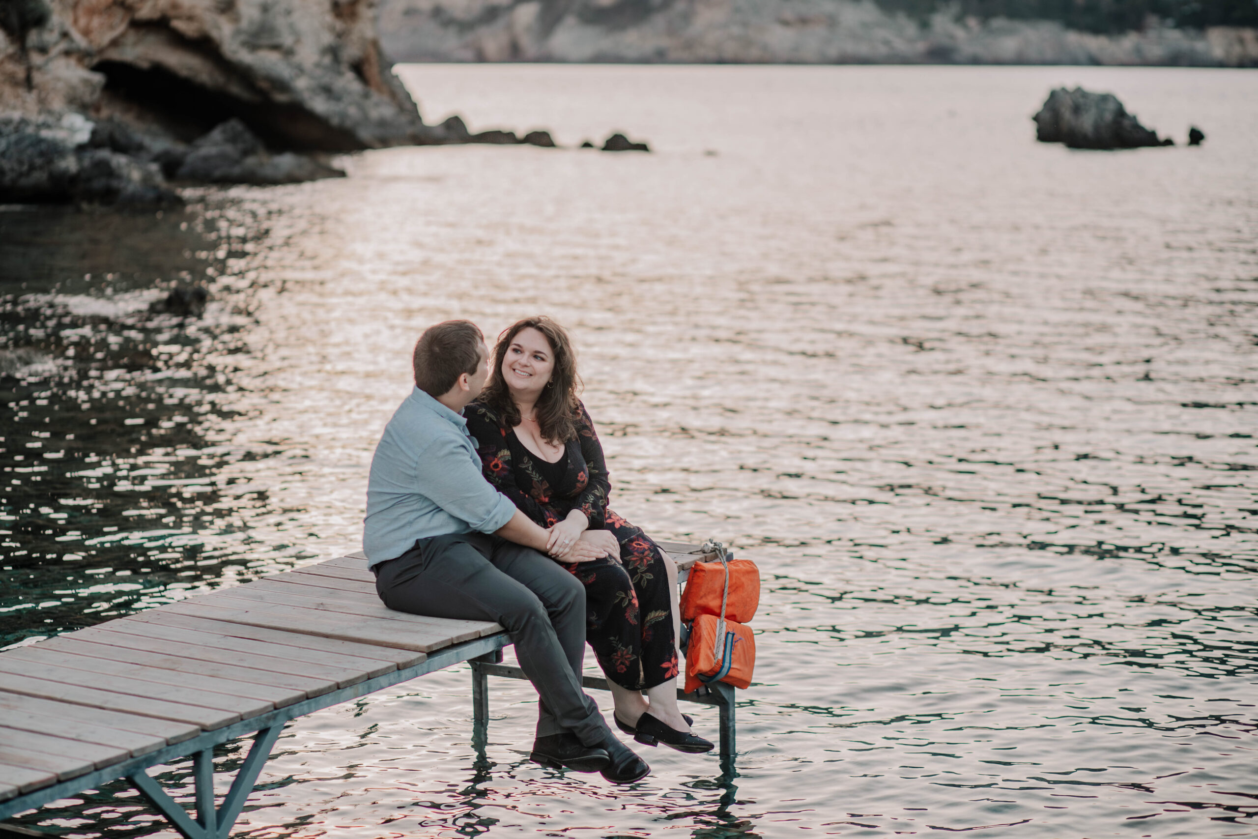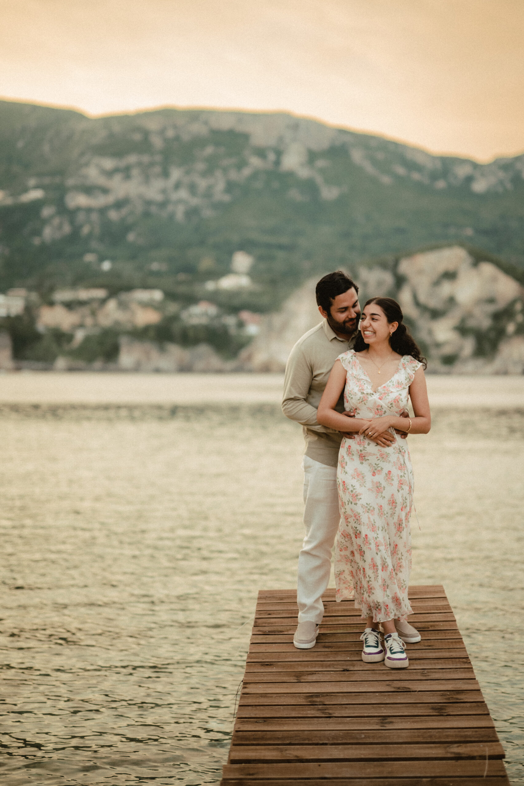 Her hand lifts to her mouth in disbelief. The boat that brought you here drifts silently back toward the sea. Her eyes fill. She whispers “yes” before she even realizes she’s said it, rushing into your arms.